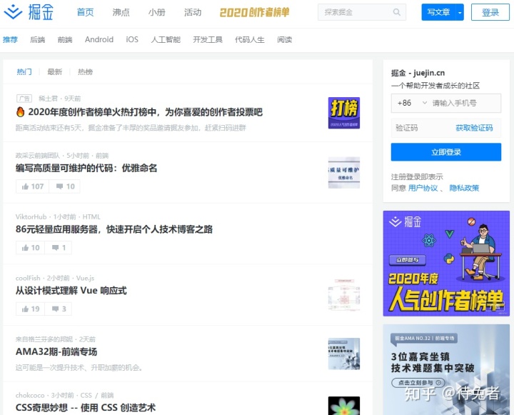 掘金成立于2015年8月,最初來自稀土,是稀土的一個(gè)子板塊。沒想到稀土并沒有走紅,掘金卻作為一個(gè)技術(shù)分享網(wǎng)站走紅,所以創(chuàng)始人明明立即調(diào)整方向,大力發(fā)展掘金。去年,掘金也開設(shè)了自己的專欄和小冊子,慢慢從一個(gè)技術(shù)文章分享網(wǎng)站轉(zhuǎn)型為綜合性技術(shù)社區(qū),期待后續(xù)發(fā)展。